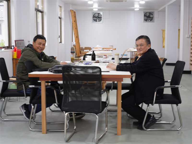 2021年5月13日,休寧縣政法委書記洪學軍與著名藝術大師陳老師來公司調研參觀楮皮紙制作。