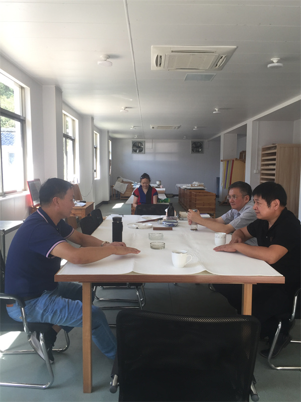 中科大湯書昆院長(zhǎng)、徽硯大師朱岱老師以及竹紙工藝大師來我公司參觀學(xué)習(xí),探討紙制作技藝、進(jìn)行紙文化交流。